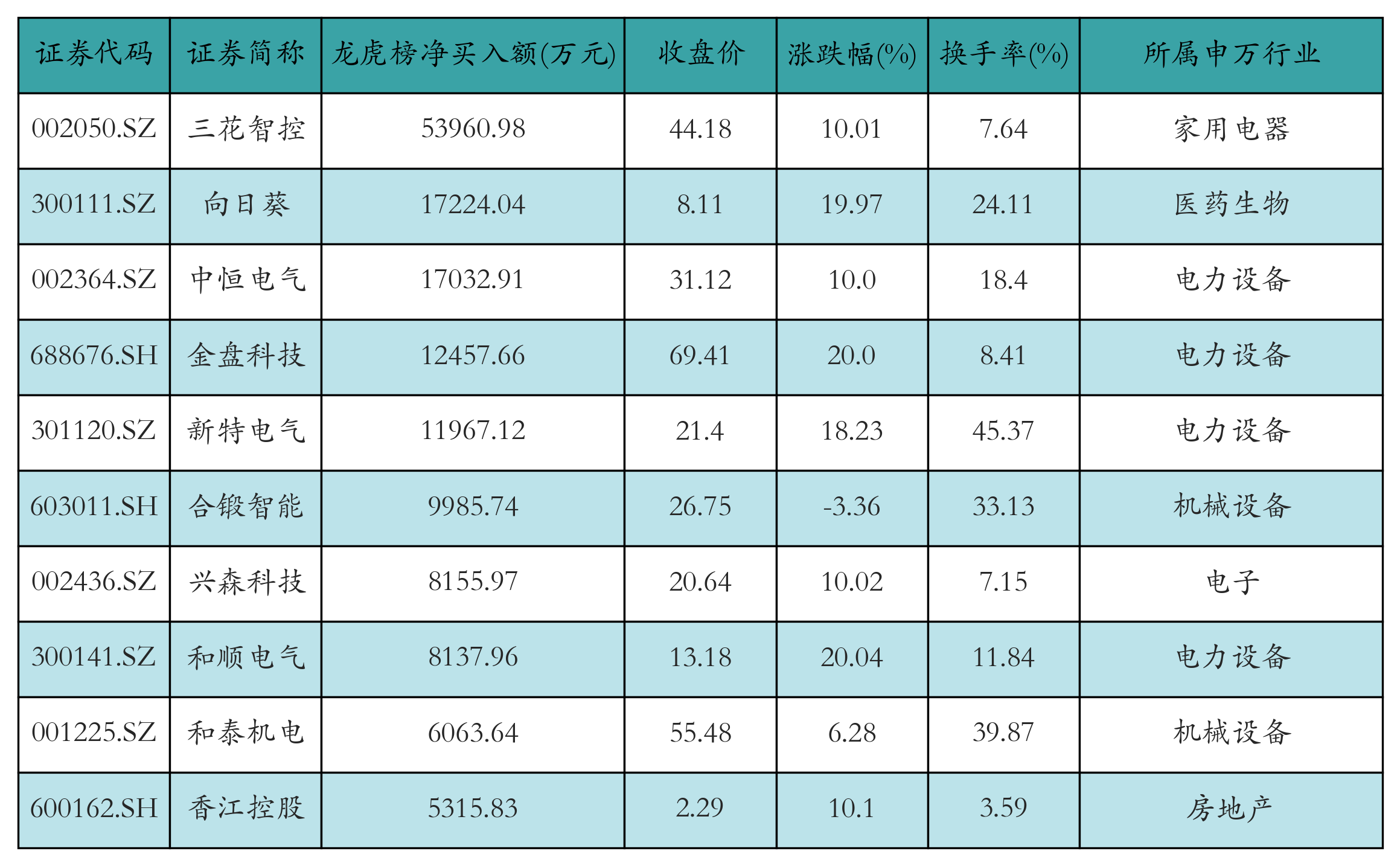 昨日龙虎榜营业部净买入额前10详情见下表:
